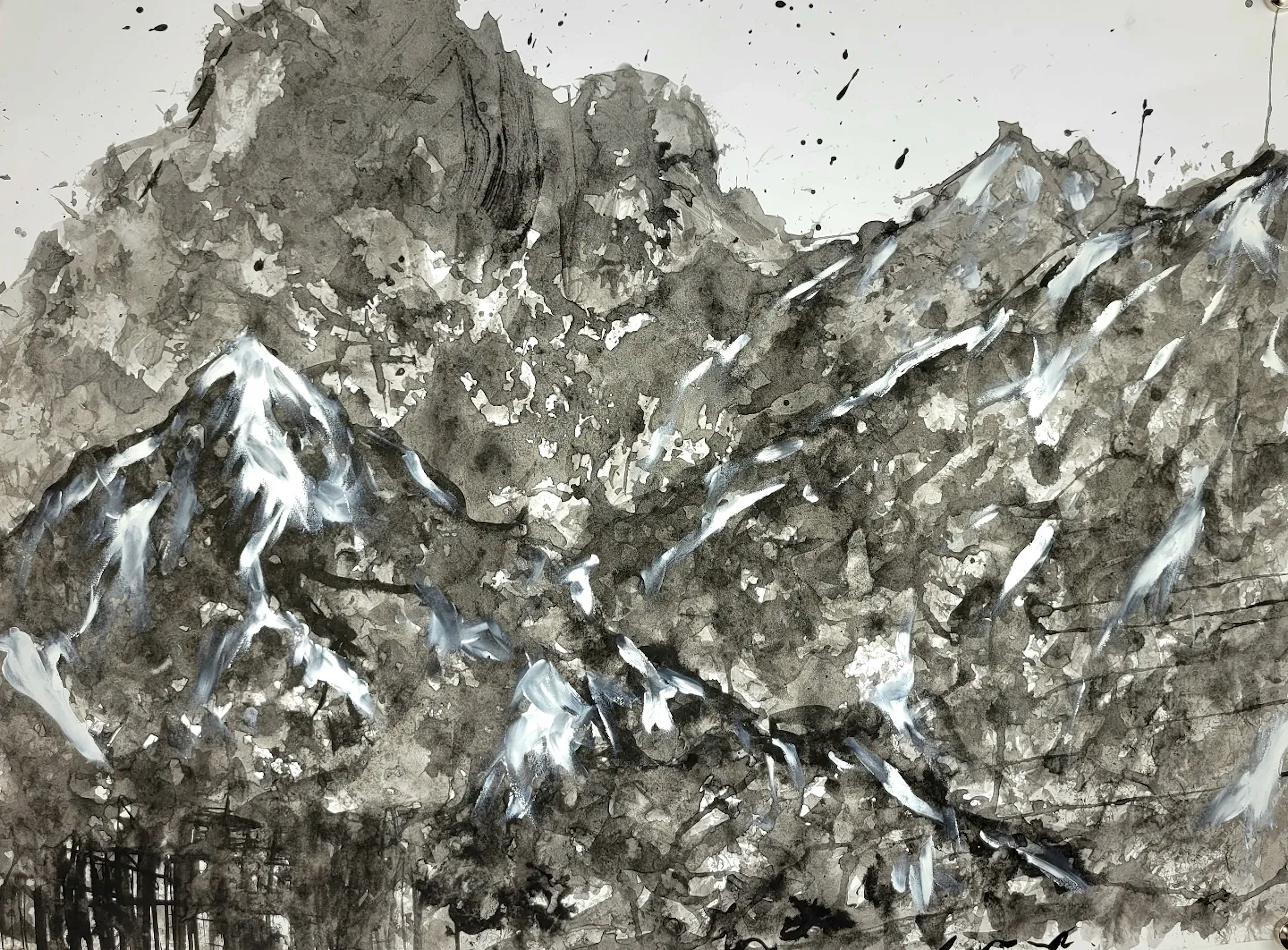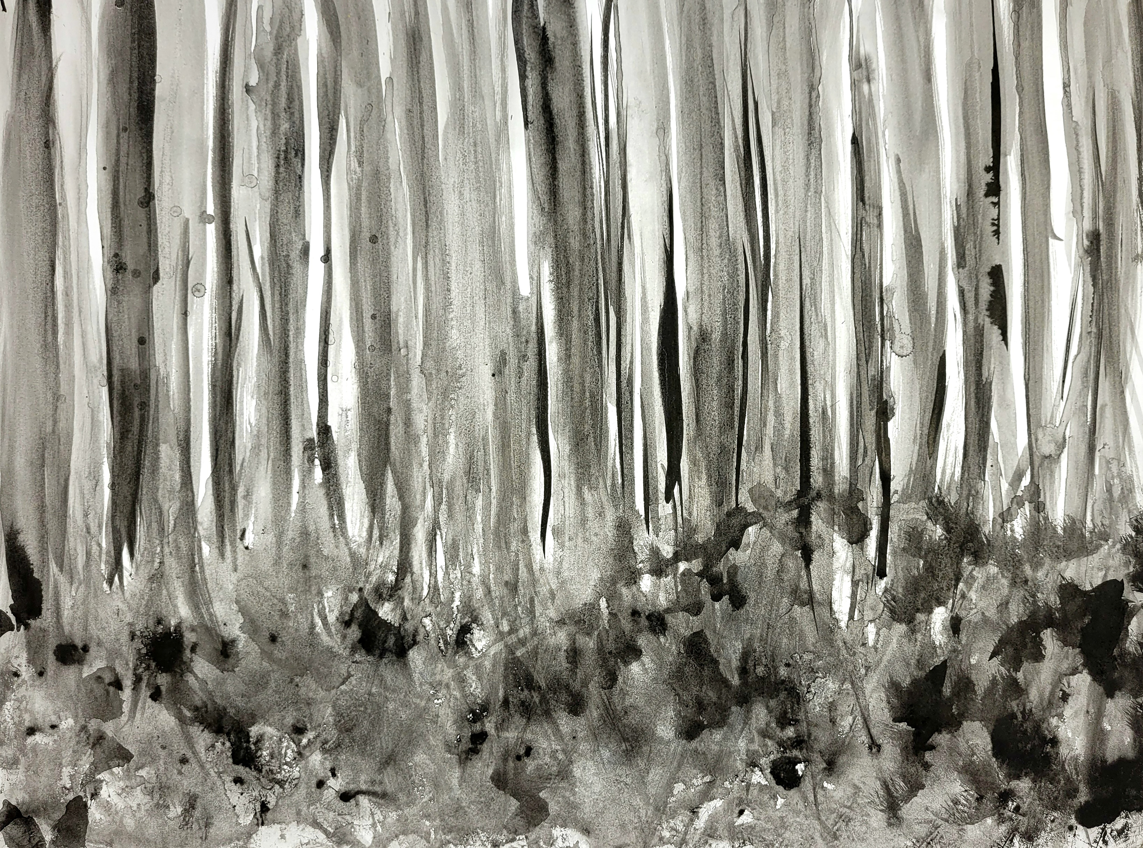 2021, 18"x24", Black Ink, Gouache, pencil, and water