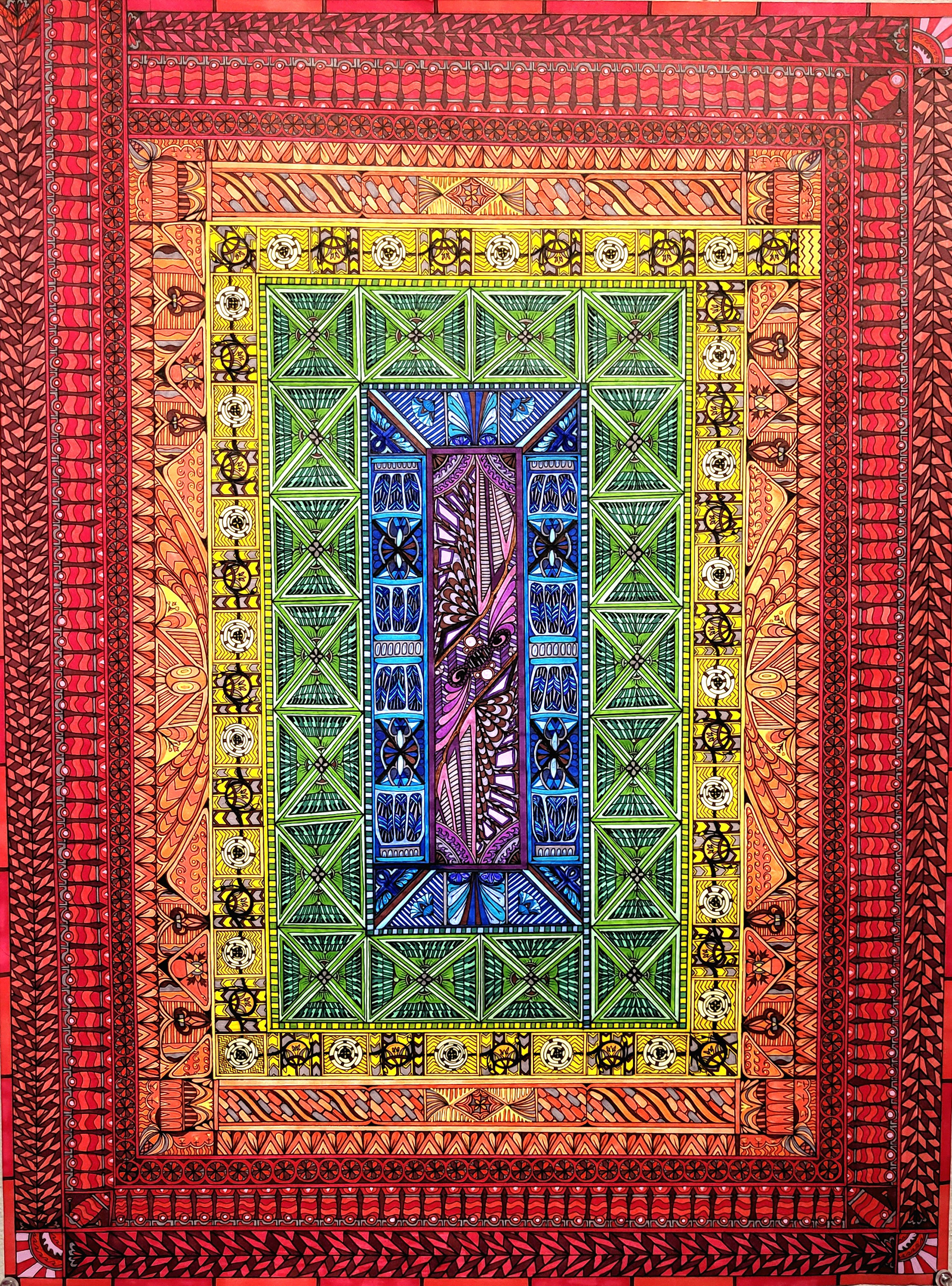 2022, 18"x22", microns, pen, markers, colored pencils, and ink