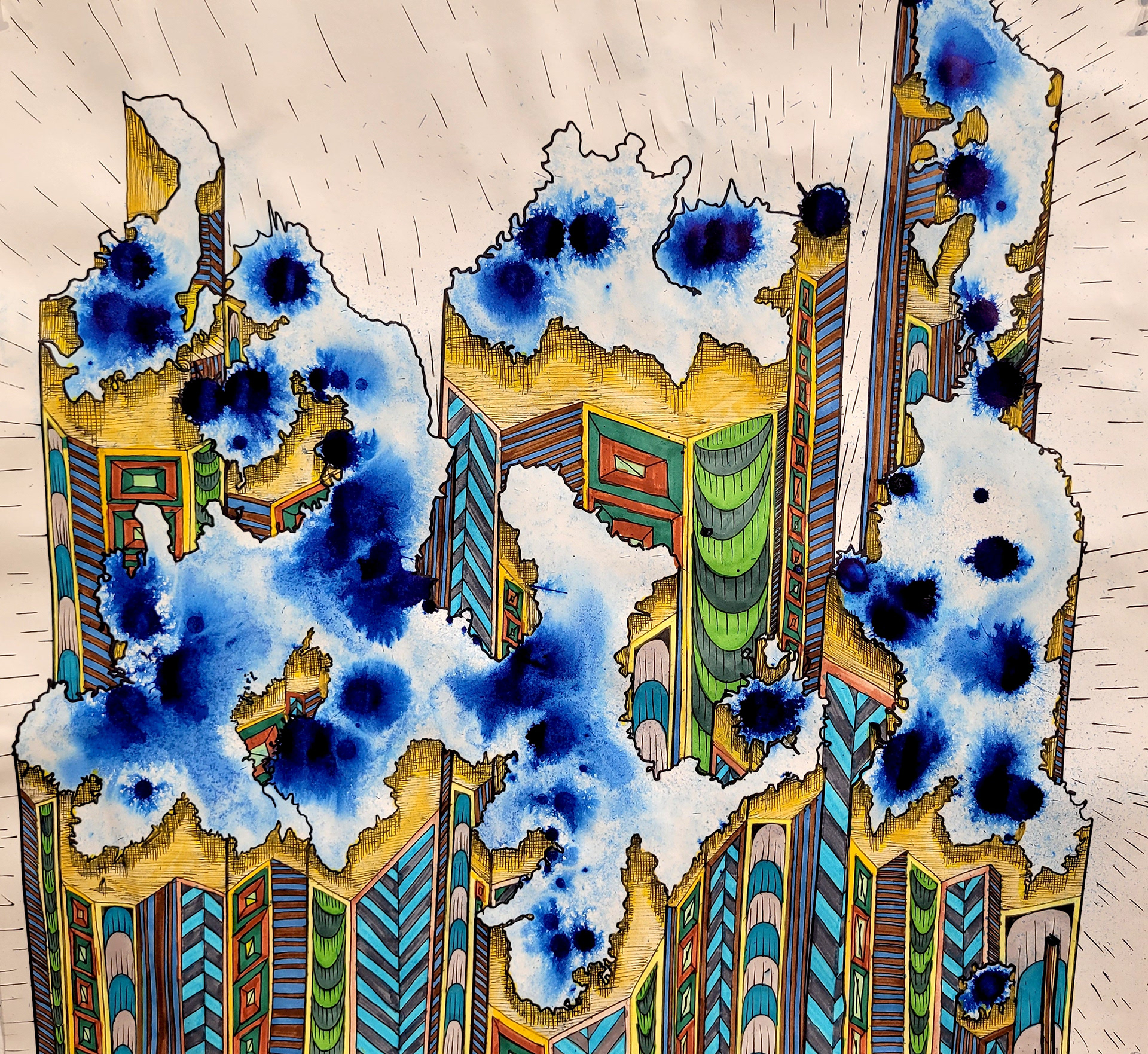 2023, 14" x 16", Ink, Microns, Colored Pencil, Watercolors, and markers