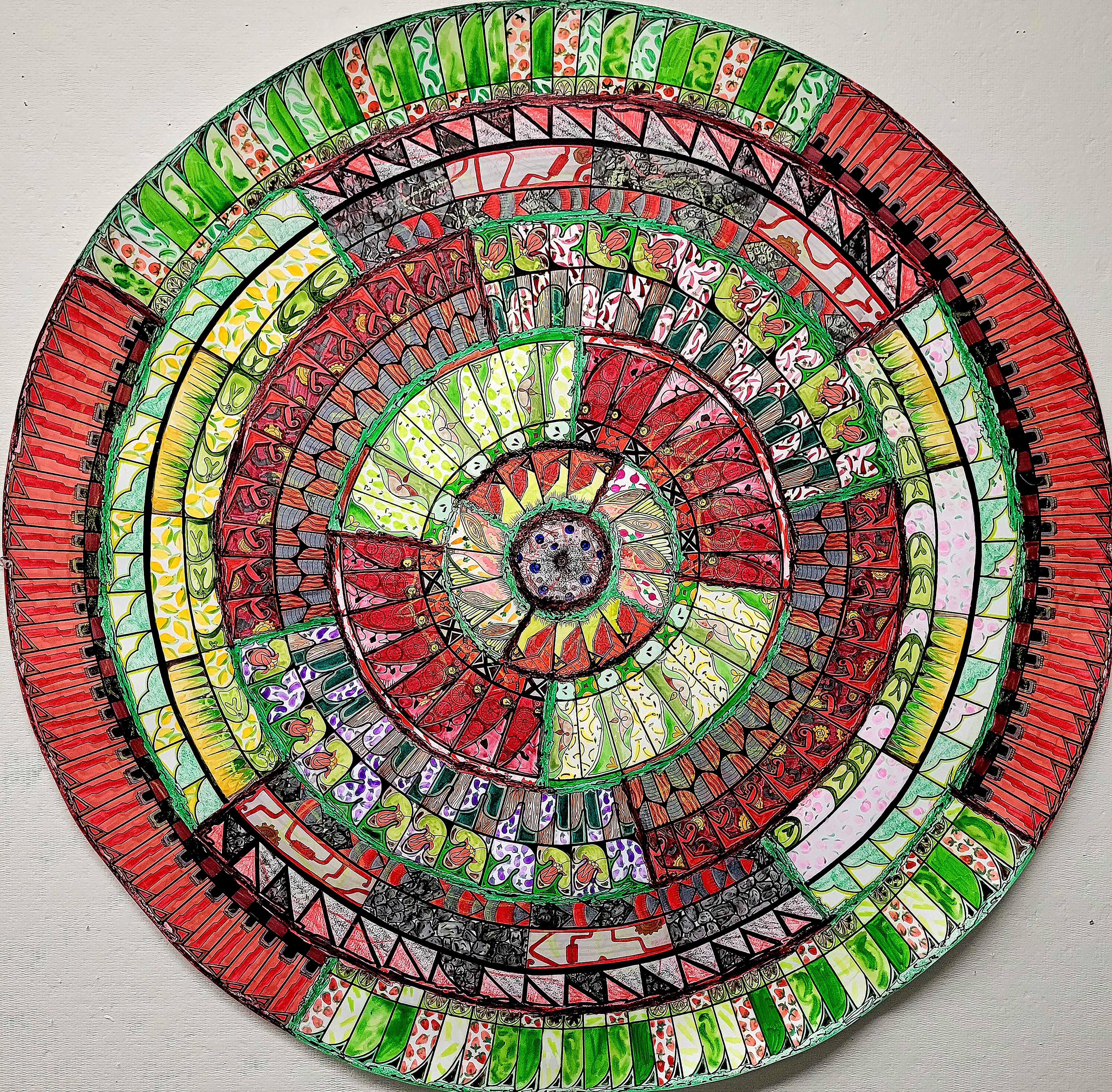 2023, 36"x 36", Gouache, Watercolors, Colored Pencils, Markers, crayon, and ink
